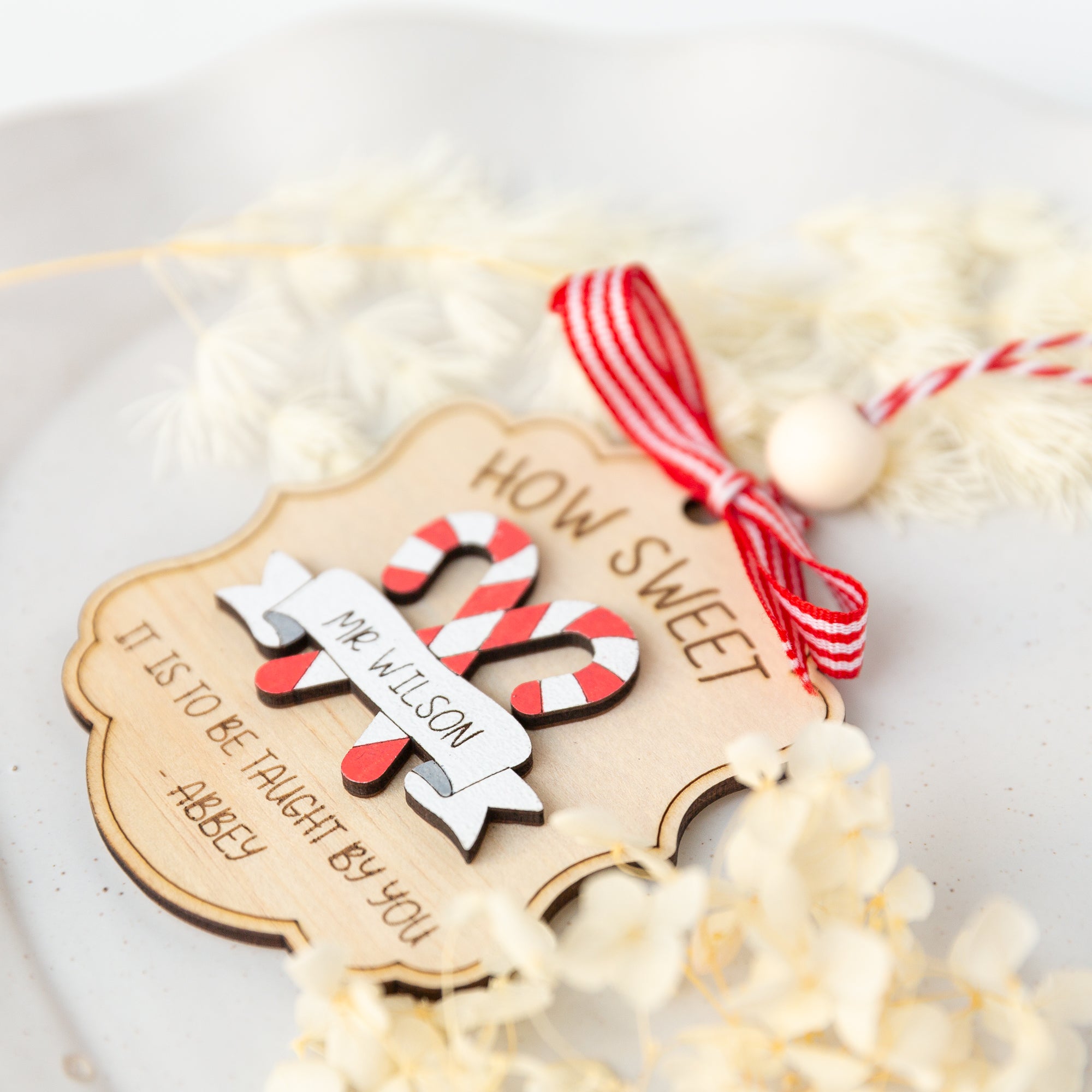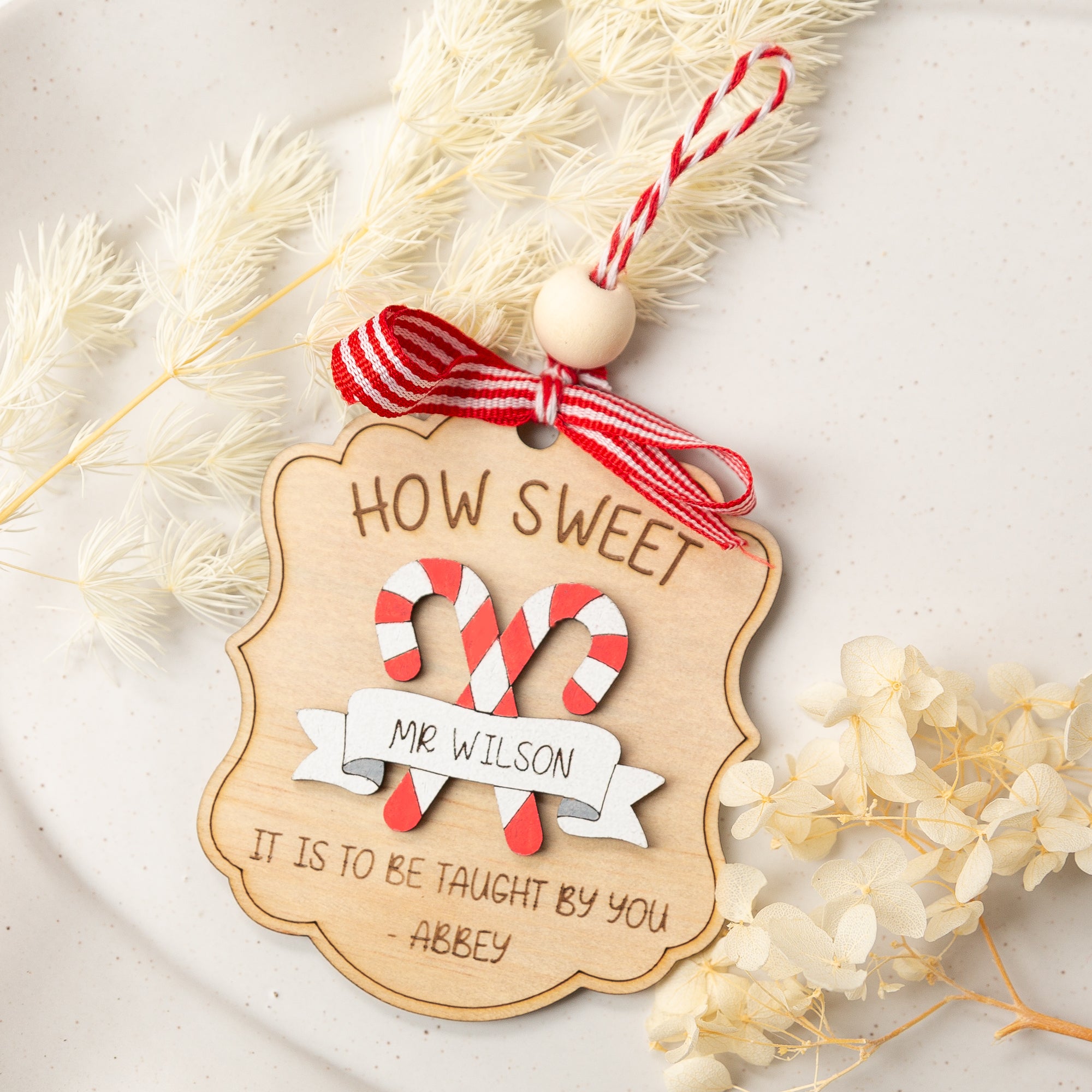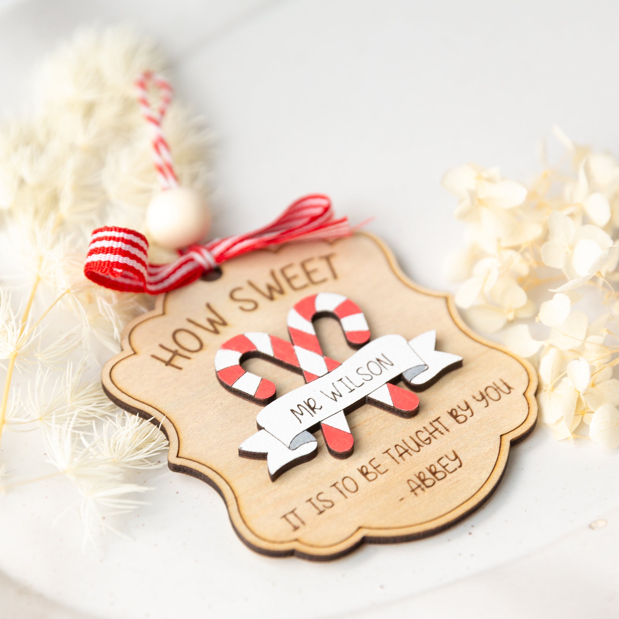 Celebrate a special teacher with this personalised “How Sweet It Is to Be Taught by You” gift ornament, beautifully crafted at 8.5x10cm and perfect for end-of-year thank-yous, classroom appreciation or Christmas gifting. Designed to be thoughtful, cute and meaningful, this keepsake features a custom name and sweet design that teachers love displaying on their desk or classroom shelf. A unique way to say thanks for their care, patience and hard work, this charming mini ornament is made with quality materials and finished to a professional standard — an ideal present from students, parents or entire classes. Tags: teacher gift, teacher appreciation, end of year teacher gift, personalised teacher gift, Australian teacher gift, small teacher gift, classroom décor, cute teacher present, thank you teacher, custom teacher plaque, gift for educator, student to teacher gift, school gift.
