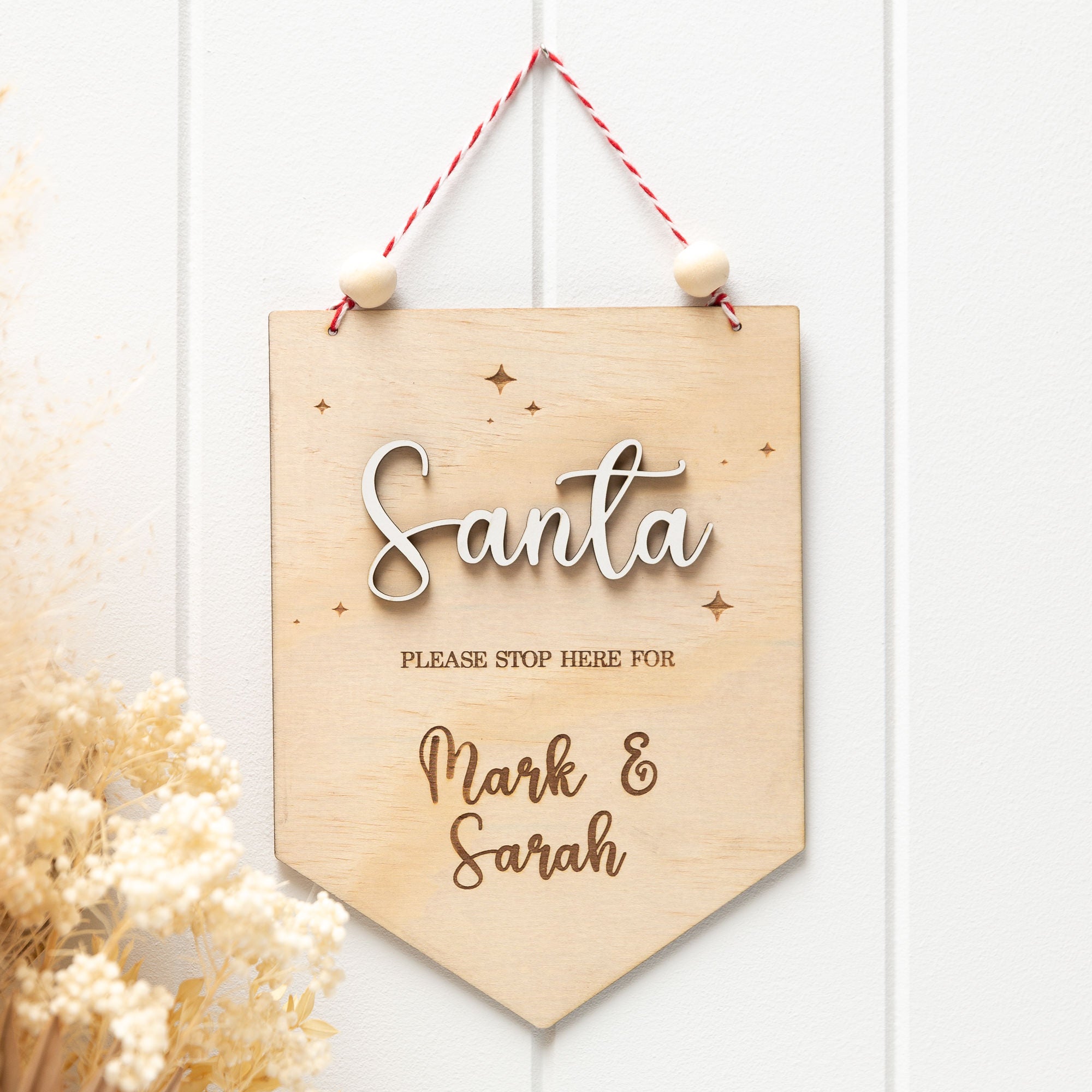 Make Christmas Eve extra magical with this personalised “Santa Stop Here” sign, custom-made just for your child or family. Crafted from quality wood and laser engraved for a crisp finish, this festive sign is the perfect addition to your Christmas décor and a fun tradition kids will love year after year.