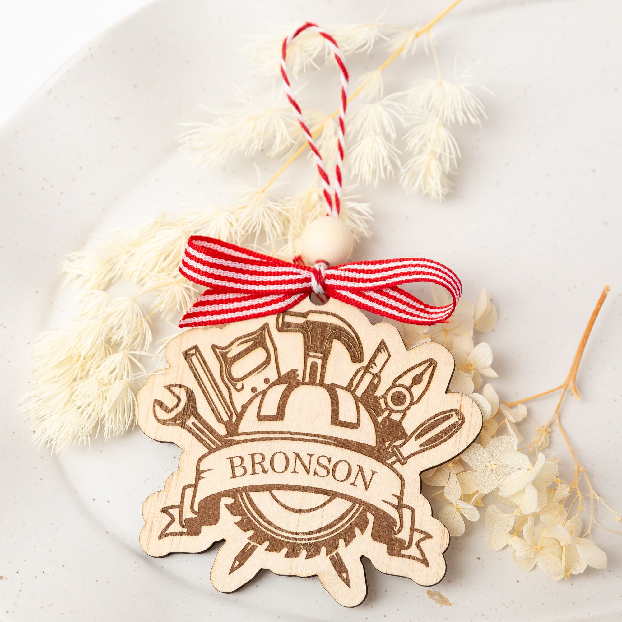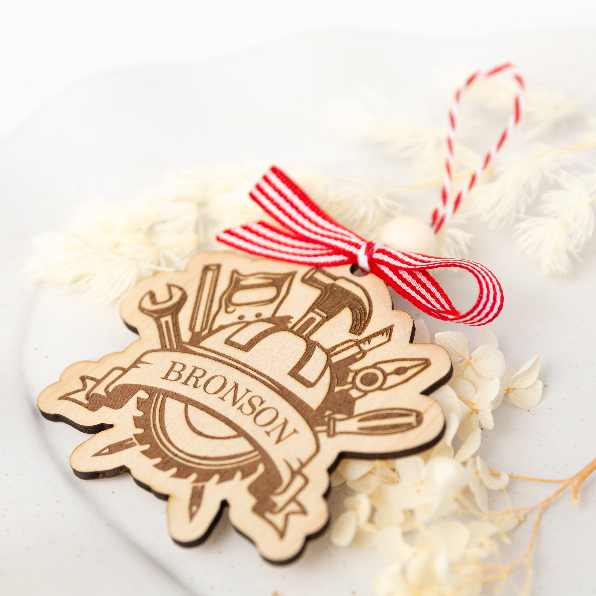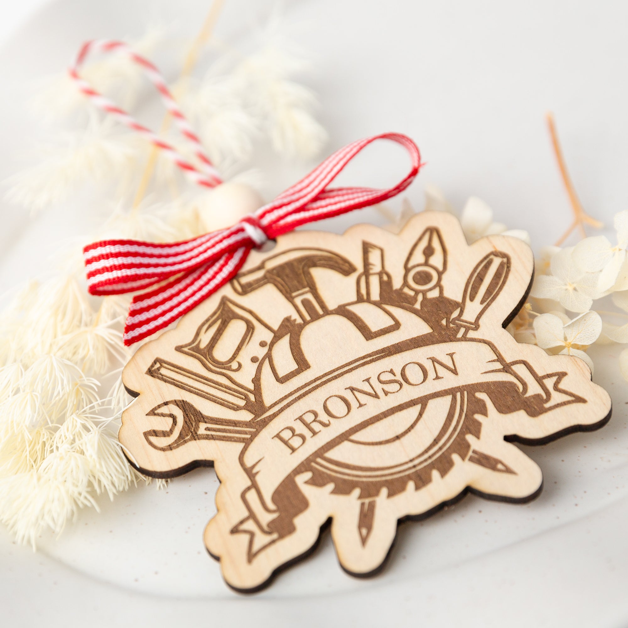 Celebrate the handy-person or DIY enthusiast in your life with this unique, personalised wooden tools ornament. Crafted from quality plywood and laser-engraved with your chosen name, this ornament features a classic toolbox / tools motif — perfect for tradies, hobbyists, or anyone who loves a good DIY project.